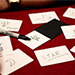 観客が思い浮かべたものをカードに書きます。